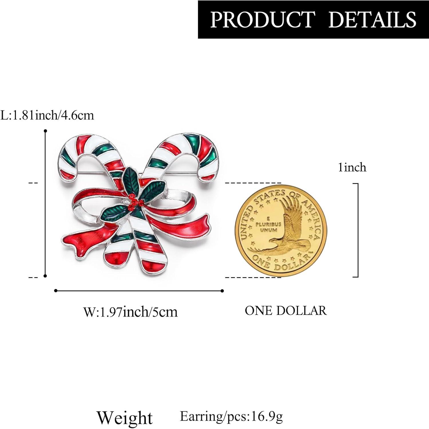 imageBriLove Christmas Brooch Pin for Women Shiny Rhinestone Cute Candy Crutch Santa Claus Jingle Bell Brooches Xmas Festival Decor Holiday Party Jewelry GiftCandy Crutch Silver