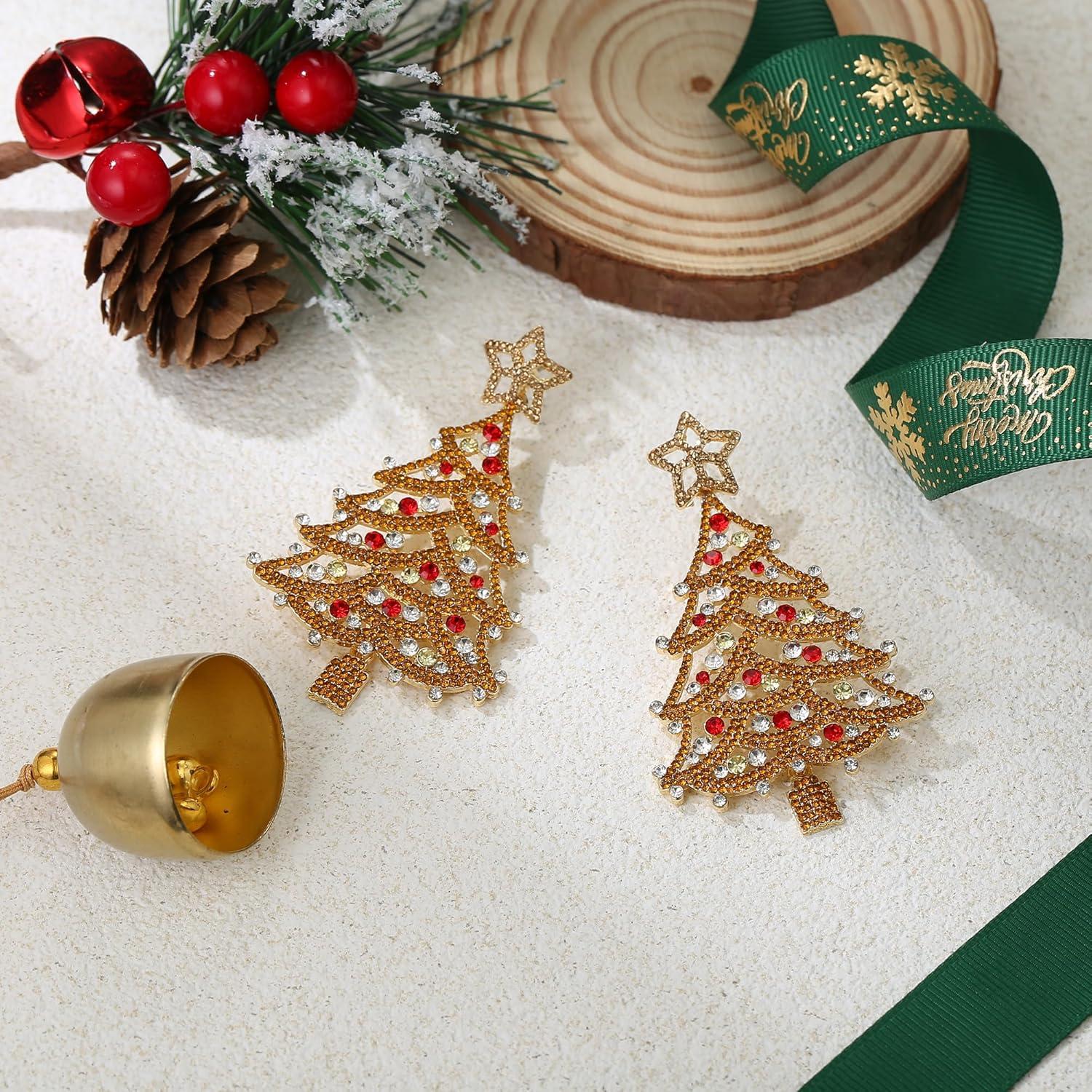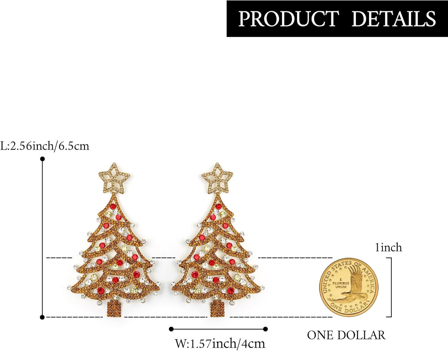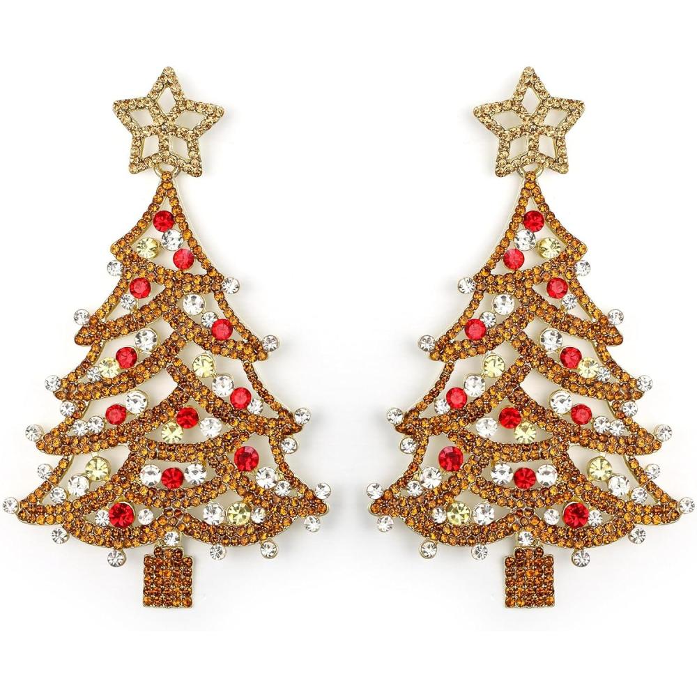 BriLove Christmas Earrings for Women Shiny Rhinestone Star Xmas Tree Drop Dangle Earring Festival Decor Holiday Party Jewelry Gift(Brown Gold-Tone)