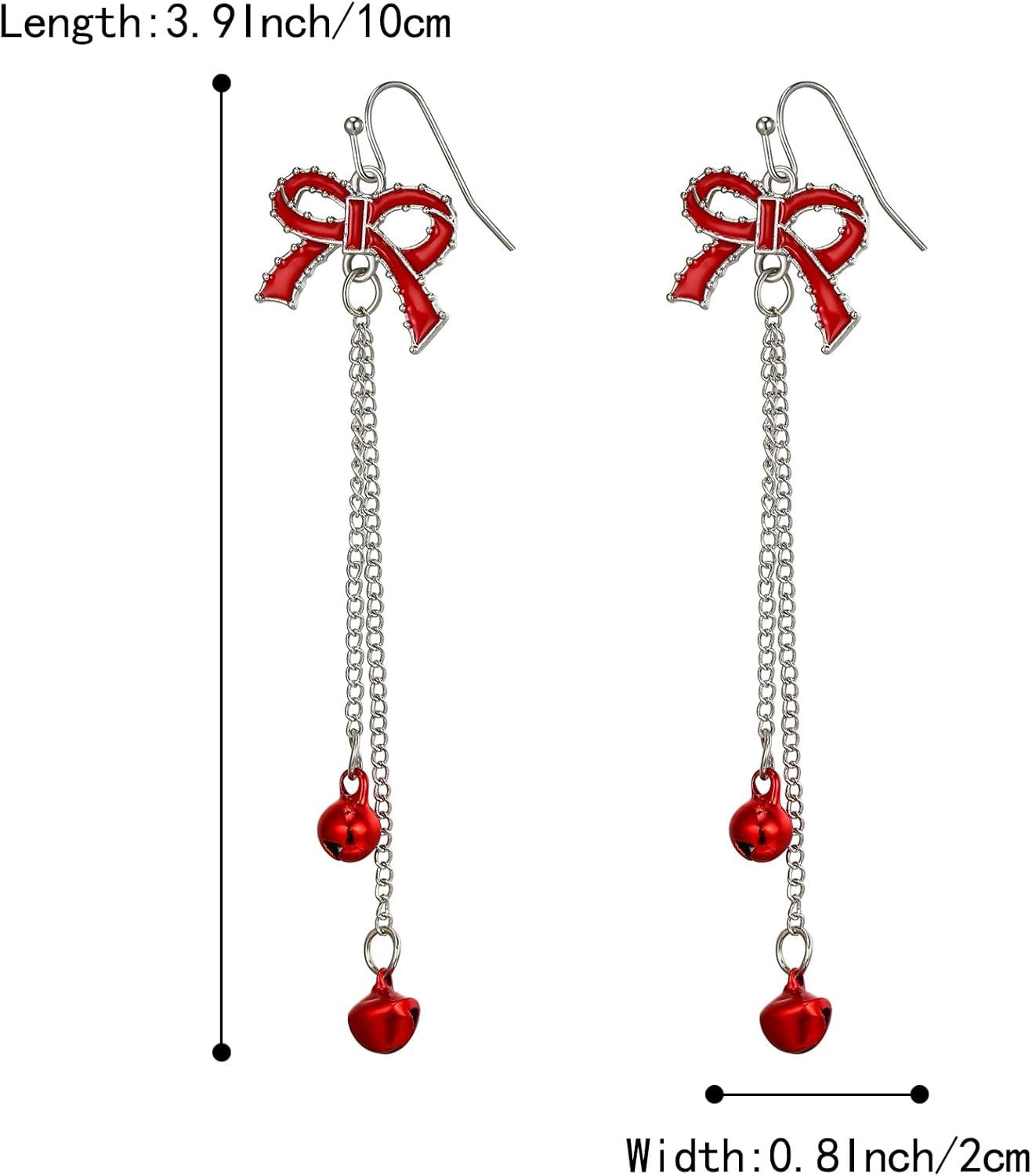 BriLove Christmas Earrings for Women Sparkling Crystal Red Santa Claus Hat Snowflake Stockings Deer Bow Tie Drop Dangle Earring for Holiday Party(Bow Tie)