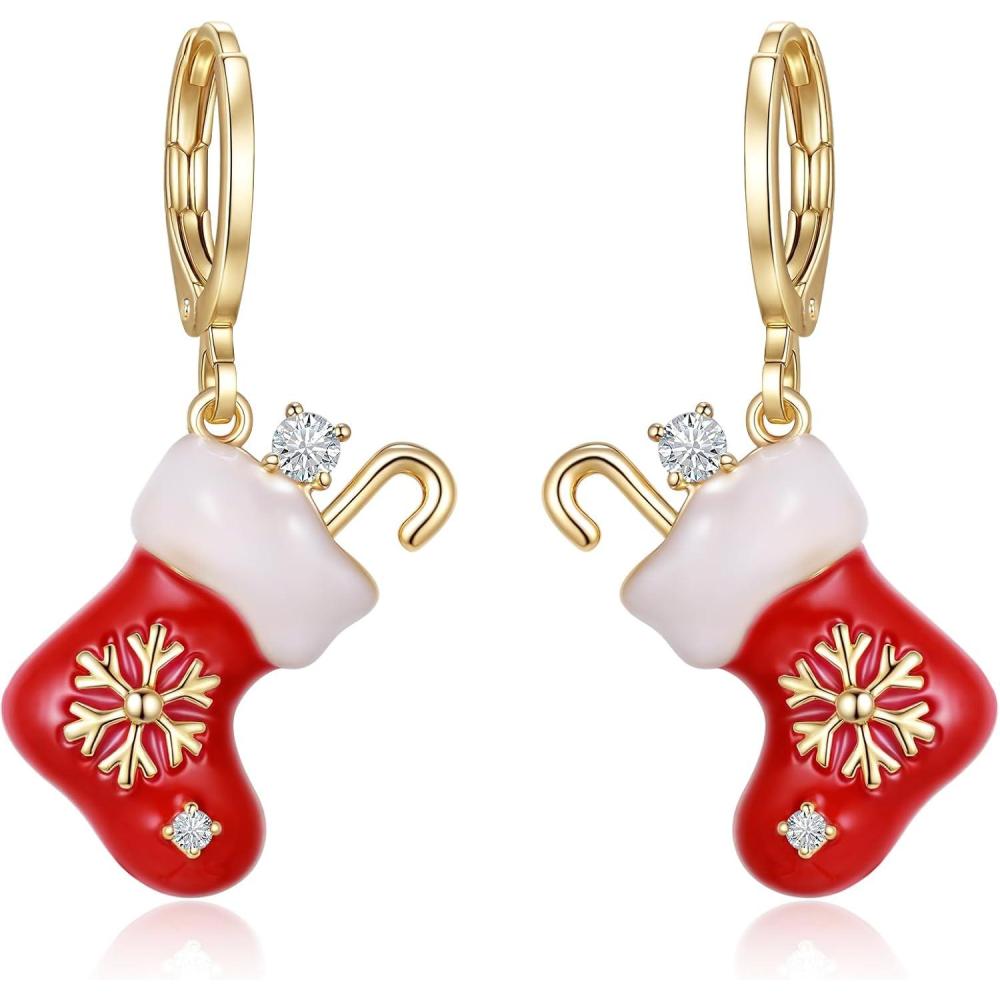BriLove Christmas Earrings for Women Sparkling Crystal Red Santa Claus Hat Snowflake Stockings Deer Bow Tie Drop Dangle Earring for Holiday Party(Stockings)