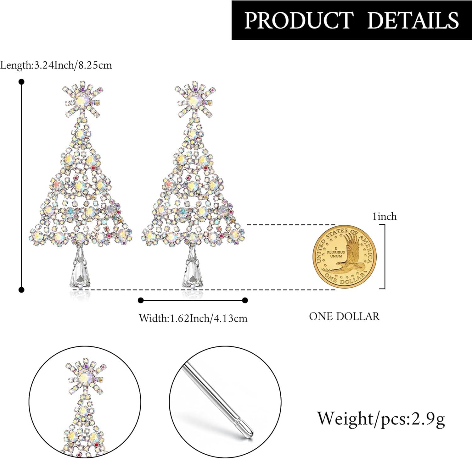 BriLove Christmas Tree Snowflake Earrings for Women,Shiny Winter Party Snowflakes Rhinestones Dangle Drop Earring for Xmas Festival Decor Holiday Party Jewelry Gift(Iridescent AB Silver-Tone)