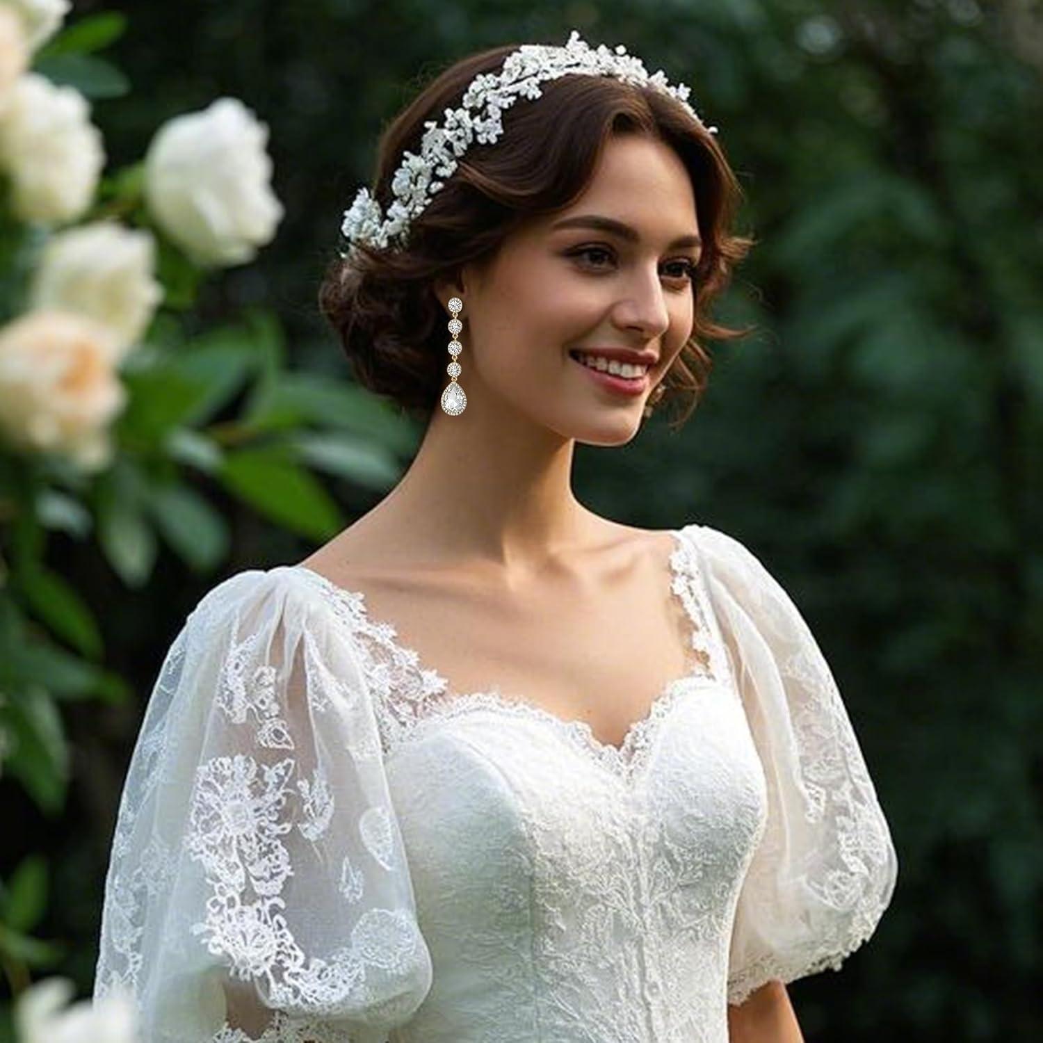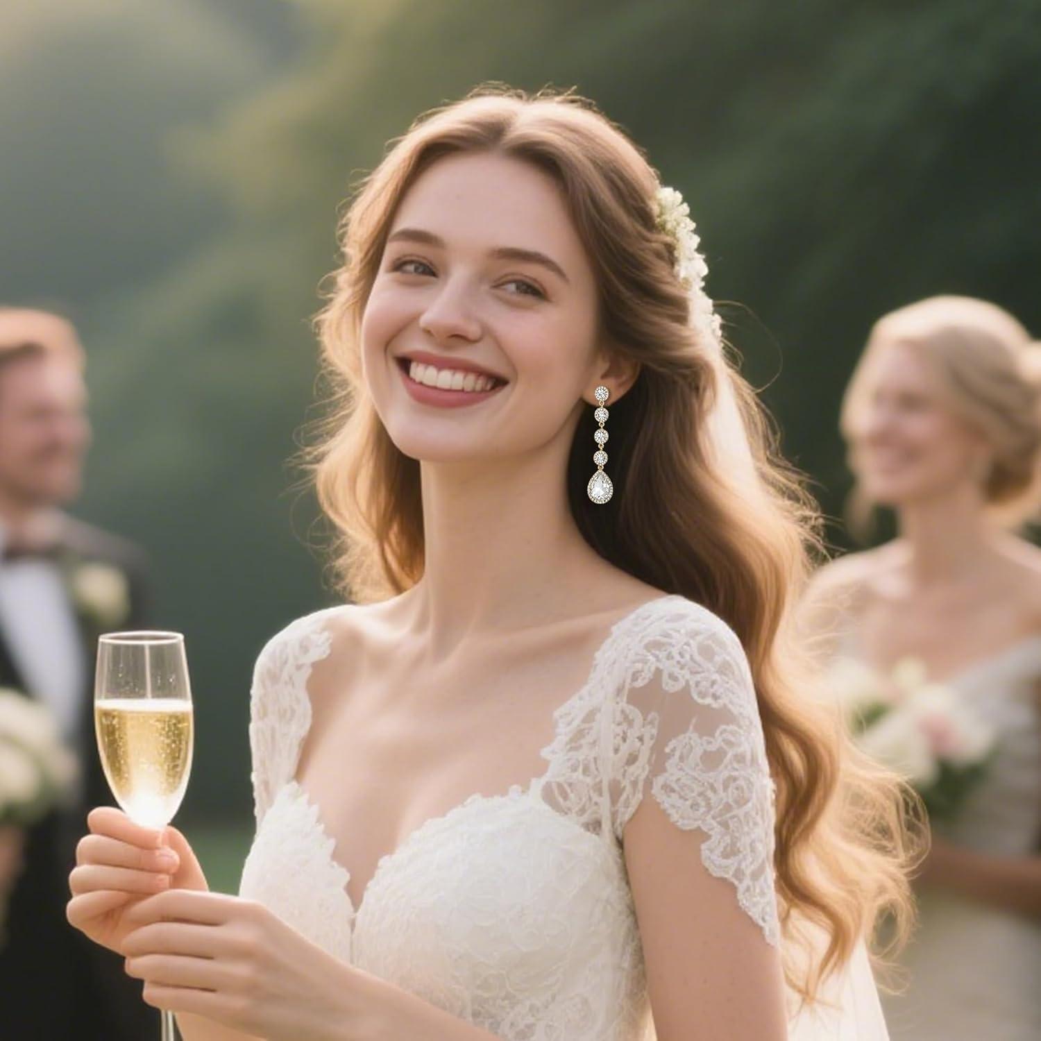 BriLove Clip-on Earrings for Women,Gorgeous Shiny Rhinestones Teardrop Chandelier Long Dangle Earring for Wedding Party Prom Jewelry Accessories(Champagne Gold-Tone)