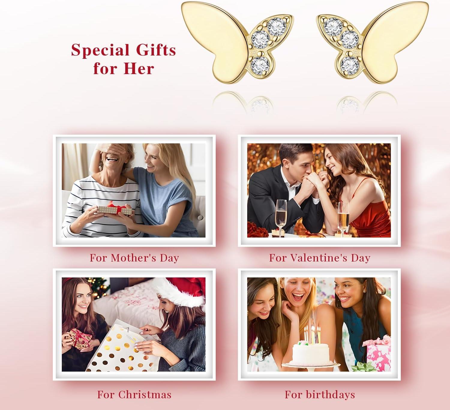 BriLove Dainty Simple 925 Sterling Silver Stud Earrings for Women,Classic Heart/Celtic/Butterfly Jewelry Gifts for Birthday Anniversary(05-CZ Butterfly)
