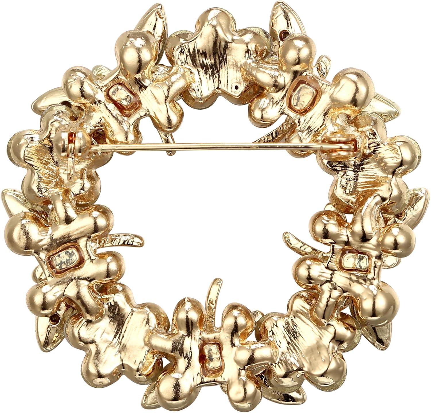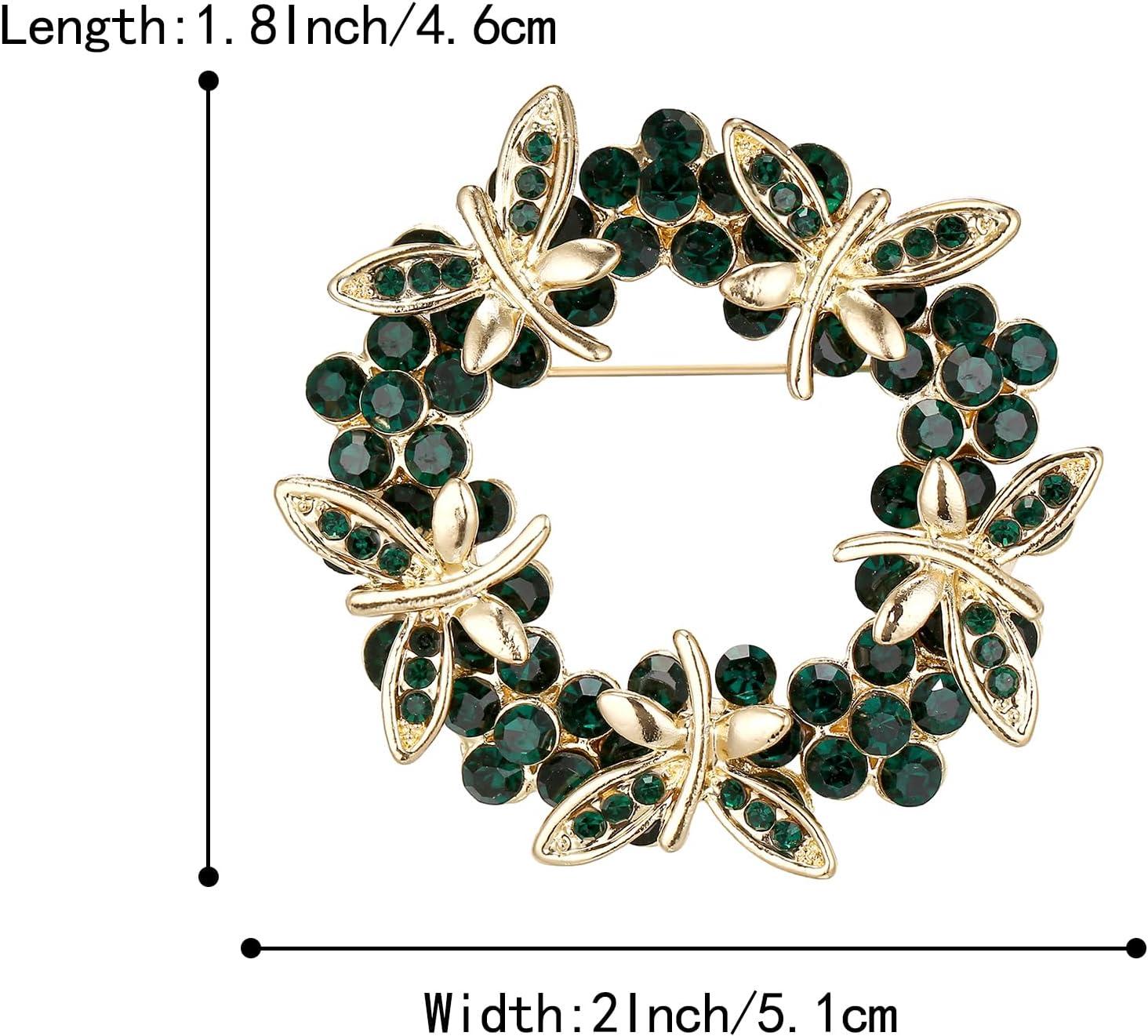 BriLove Fashion Stunning Crystal Rhinestone Animal Butterfly Flower Wreath Brooch Pins for Women Wedding Party Prom(Emerald Color Gold-Tone)