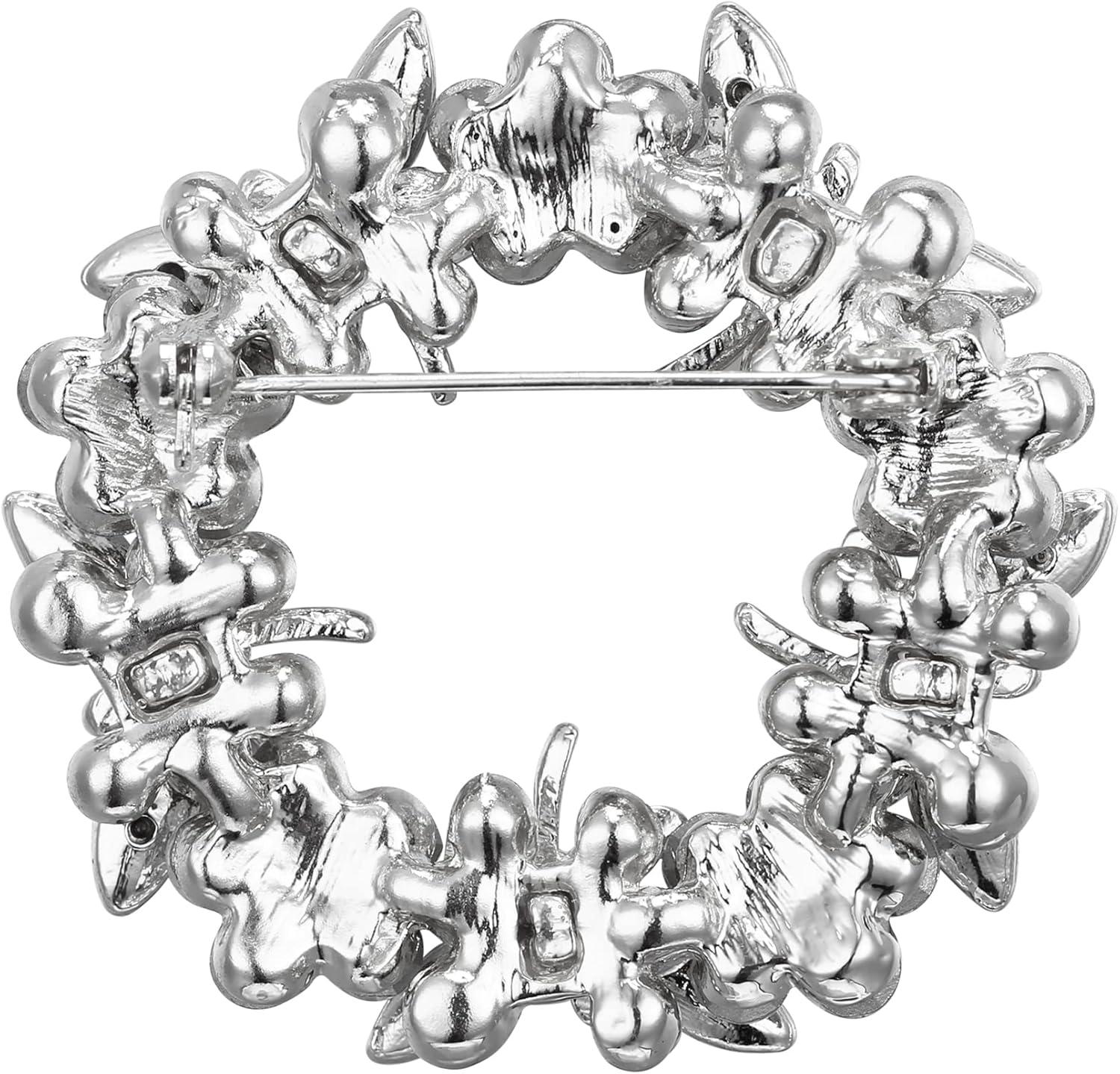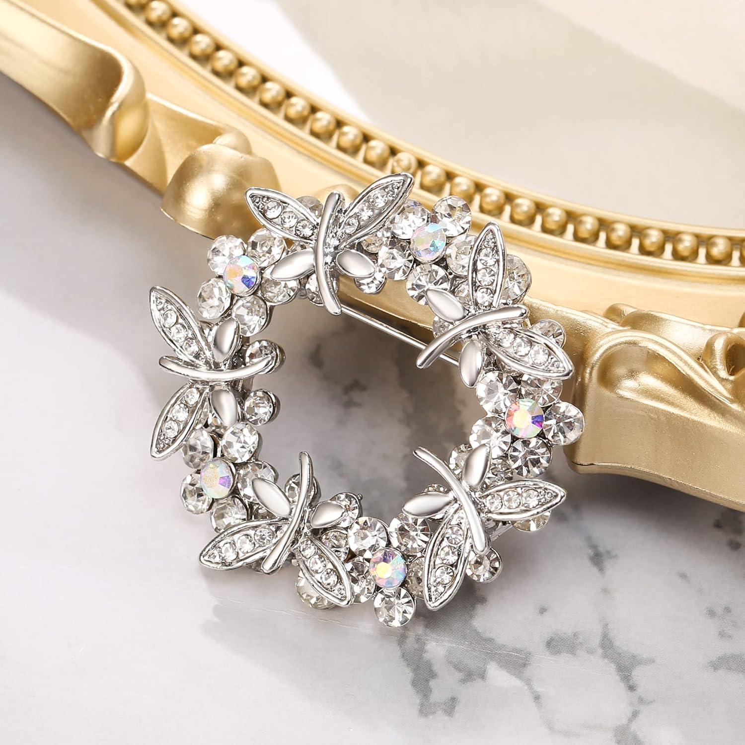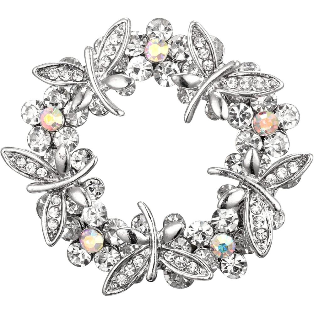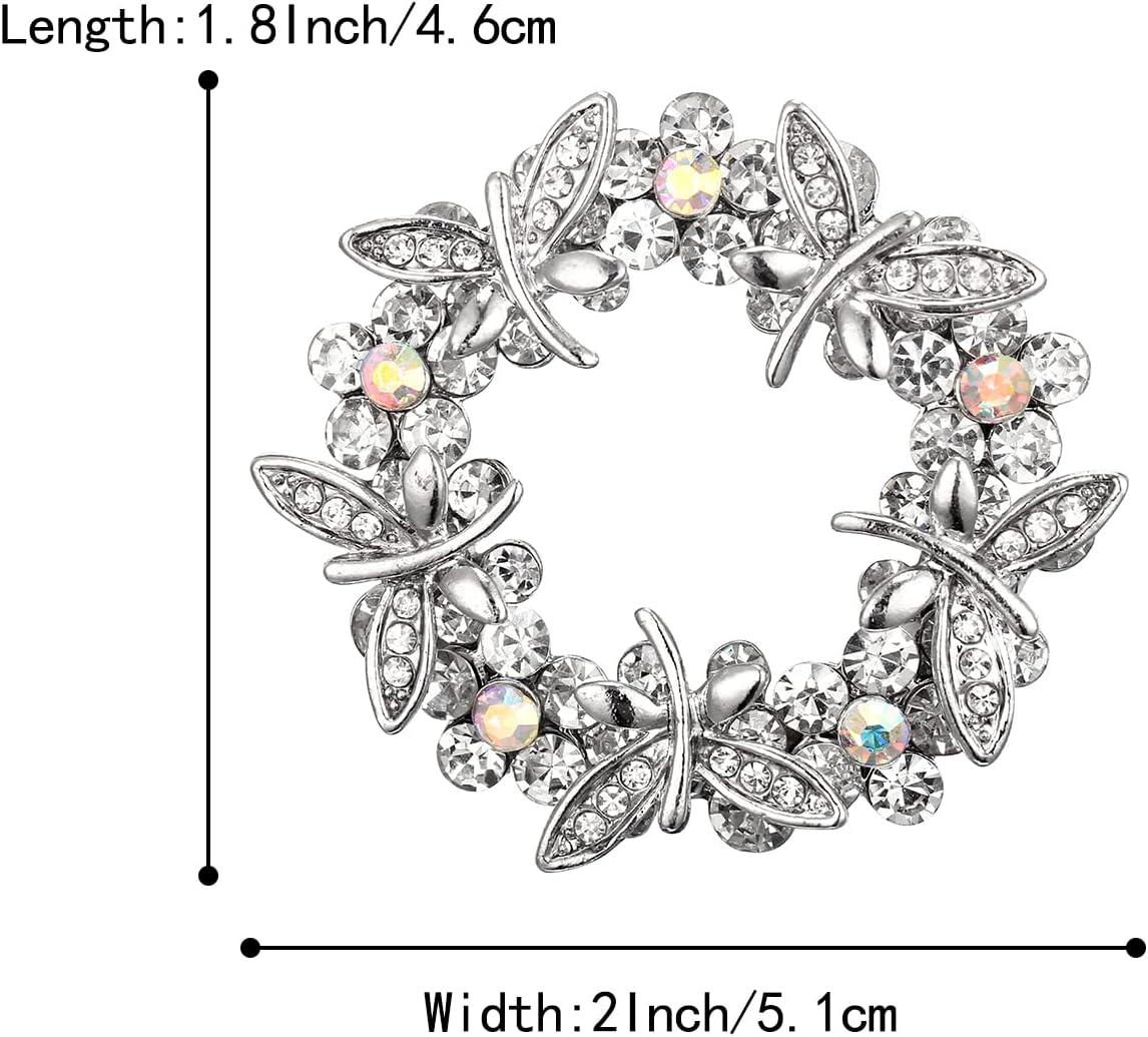 BriLove Fashion Stunning Crystal Rhinestone Animal Butterfly Flower Wreath Brooch Pins for Women Wedding Party Prom(Iridescent Clear AB Silver-Tone)