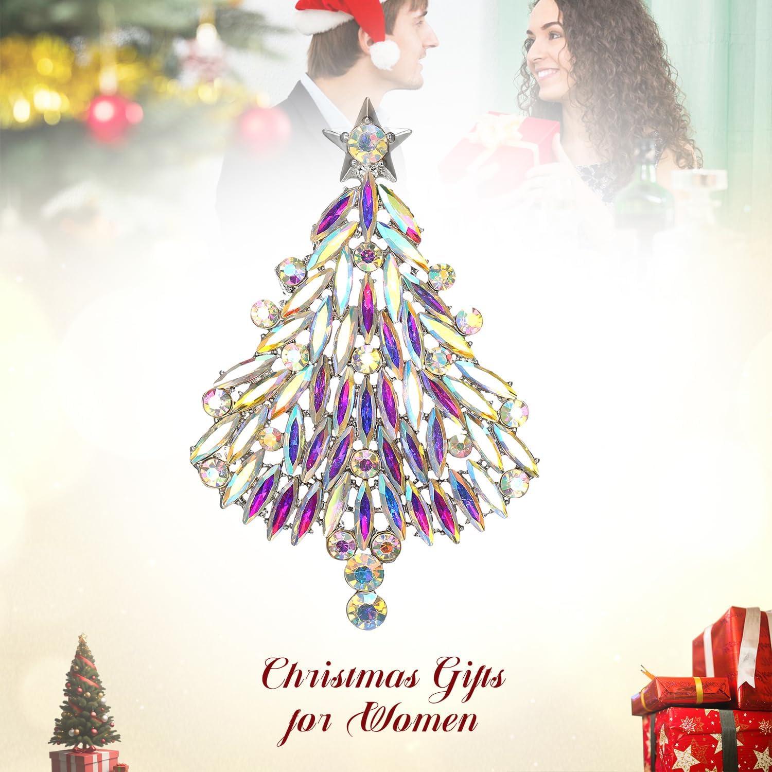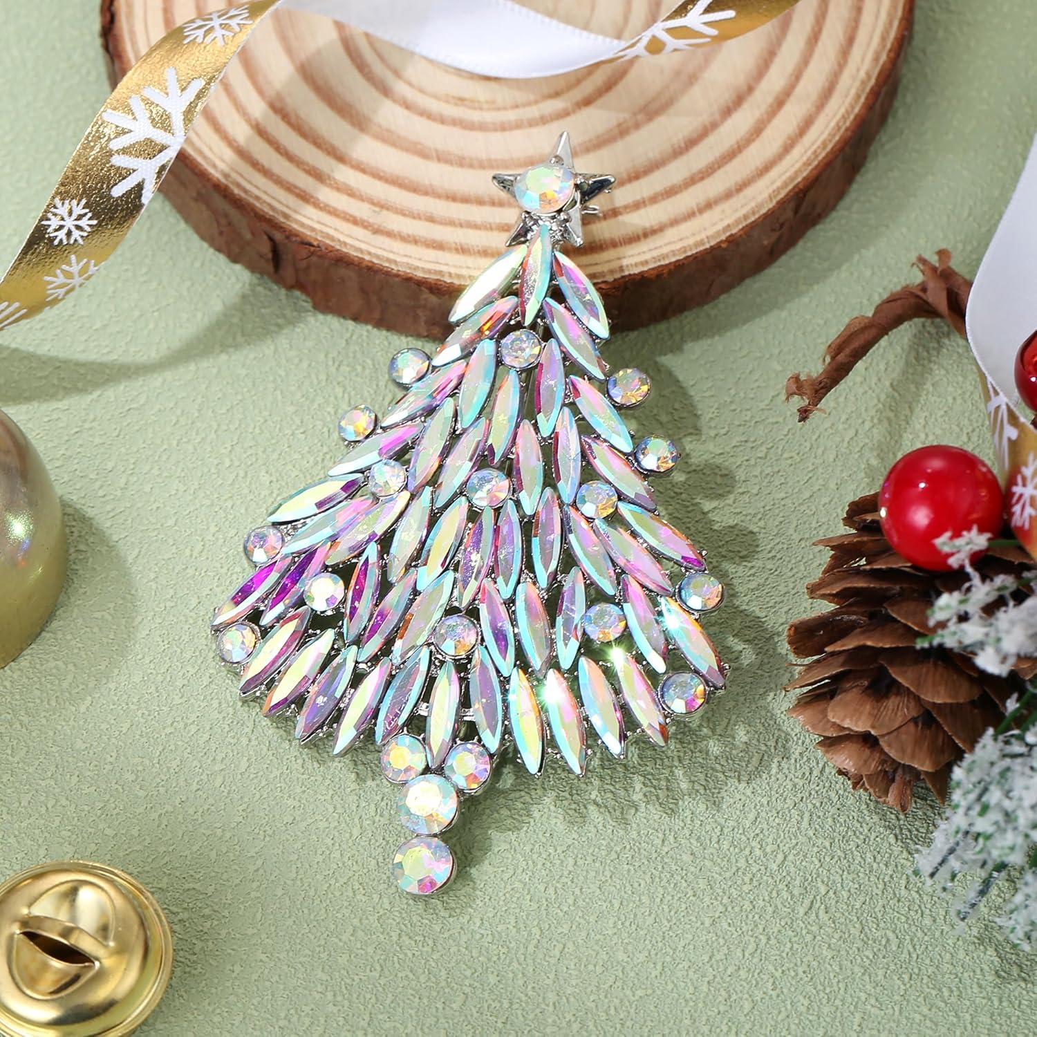 BriLove Merry Christmas Tree Brooch Xmas Star Rhinestone Marquise Decorative Gift for Women(Clear AB Silver-Tone)