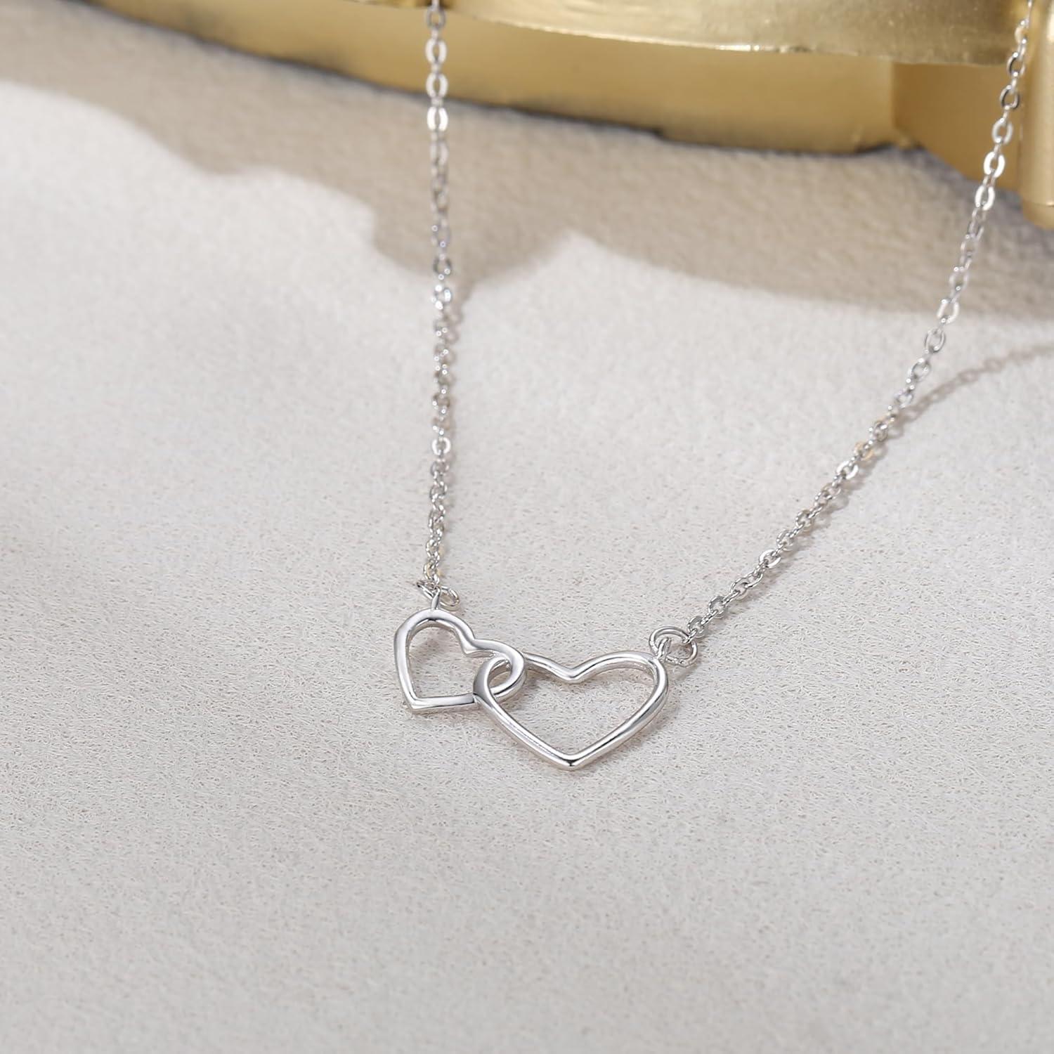 BriLove Real 925 Sterling Silver Dainty Double Love Heart Pendant Choker Necklace Gift for Women Birthday/Mothers Day/Valentines Day/Christmas(Silver-Tone)