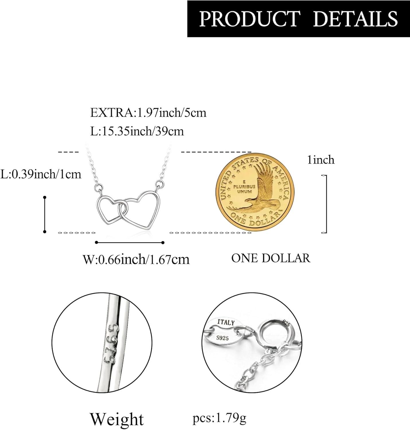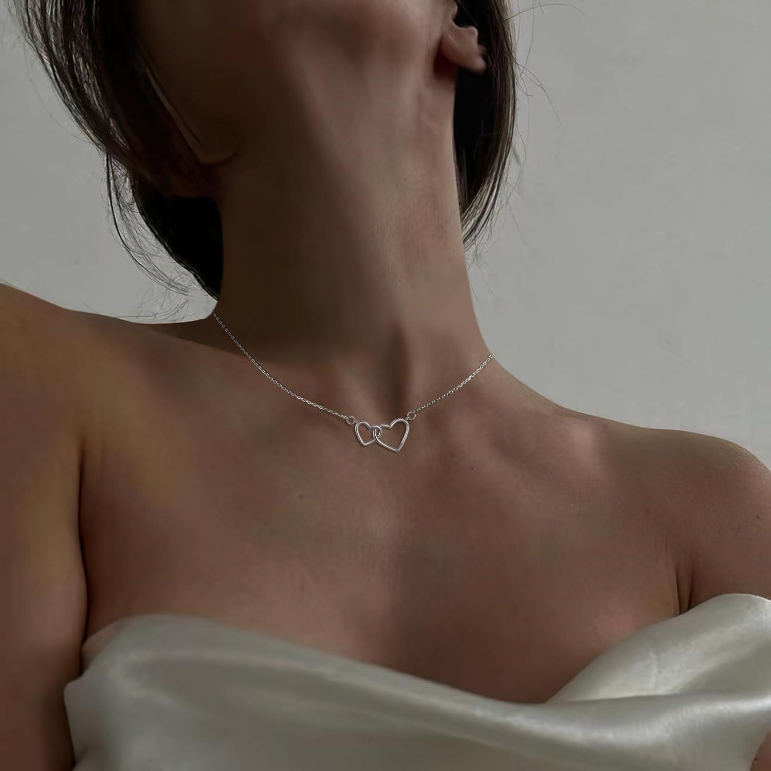 imageBriLove Real 925 Sterling Silver Dainty Double Love Heart Pendant Choker Necklace Gift for Women BirthdayMothers DayValentines DayChristmasSilverTone