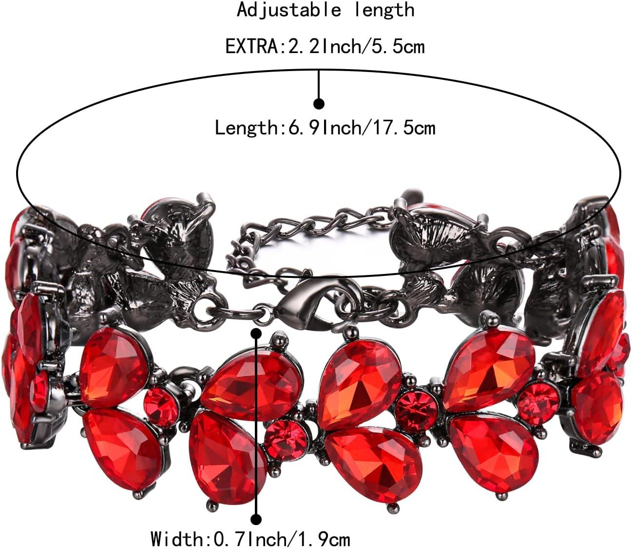 BriLove Wedding Bridal Crystal Rhinestone Multi Teardrop Bracelet for Women Party Prom(Ruby Color Black-Tone)