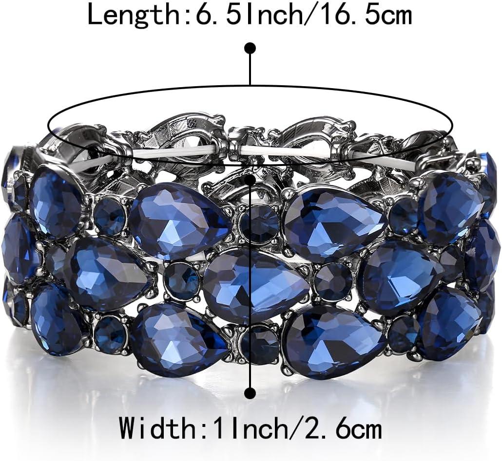BriLove Wedding Bridal Elegant Crystal Double Row Teardrop Cluster Stretch Bangle Bracelet for Bride(4-Layer-Sapphire Color)