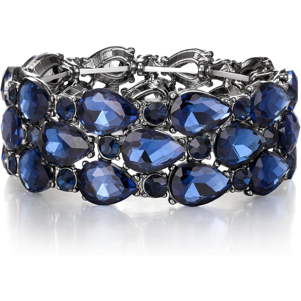 imageBriLove Wedding Bridal Elegant Crystal Double Row Teardrop Cluster Stretch Bangle Bracelet for Bride4LayerSapphire Color