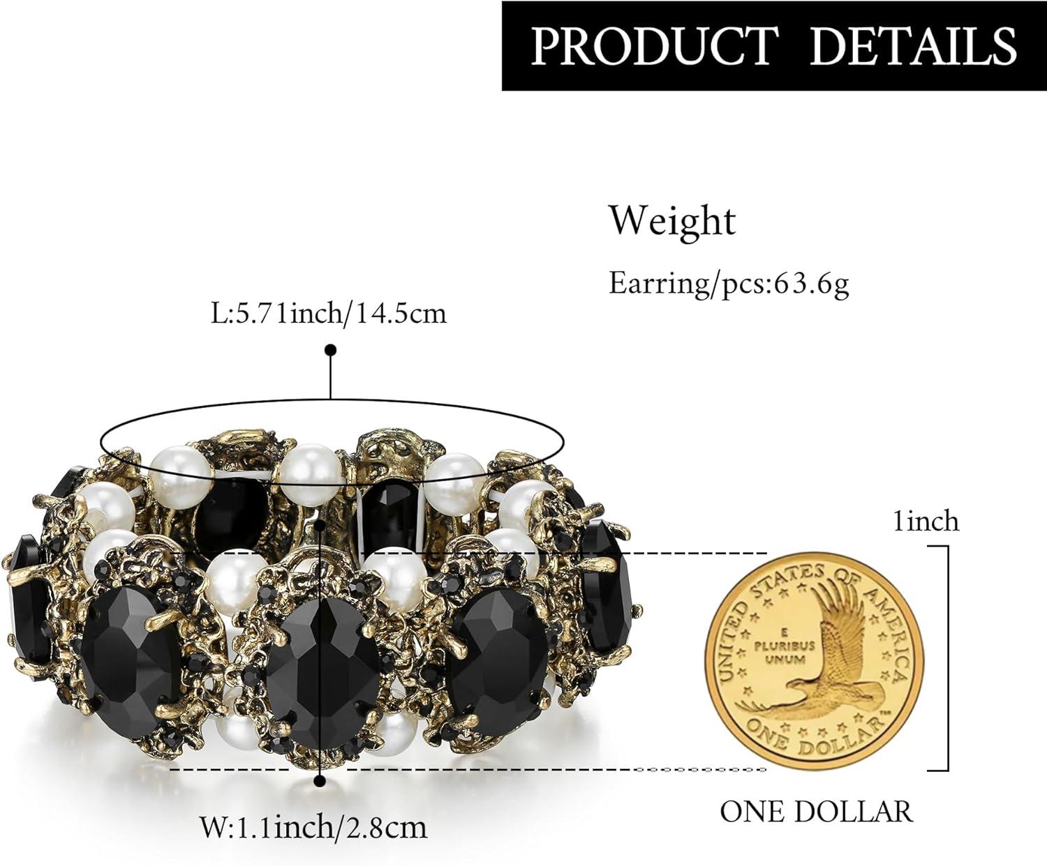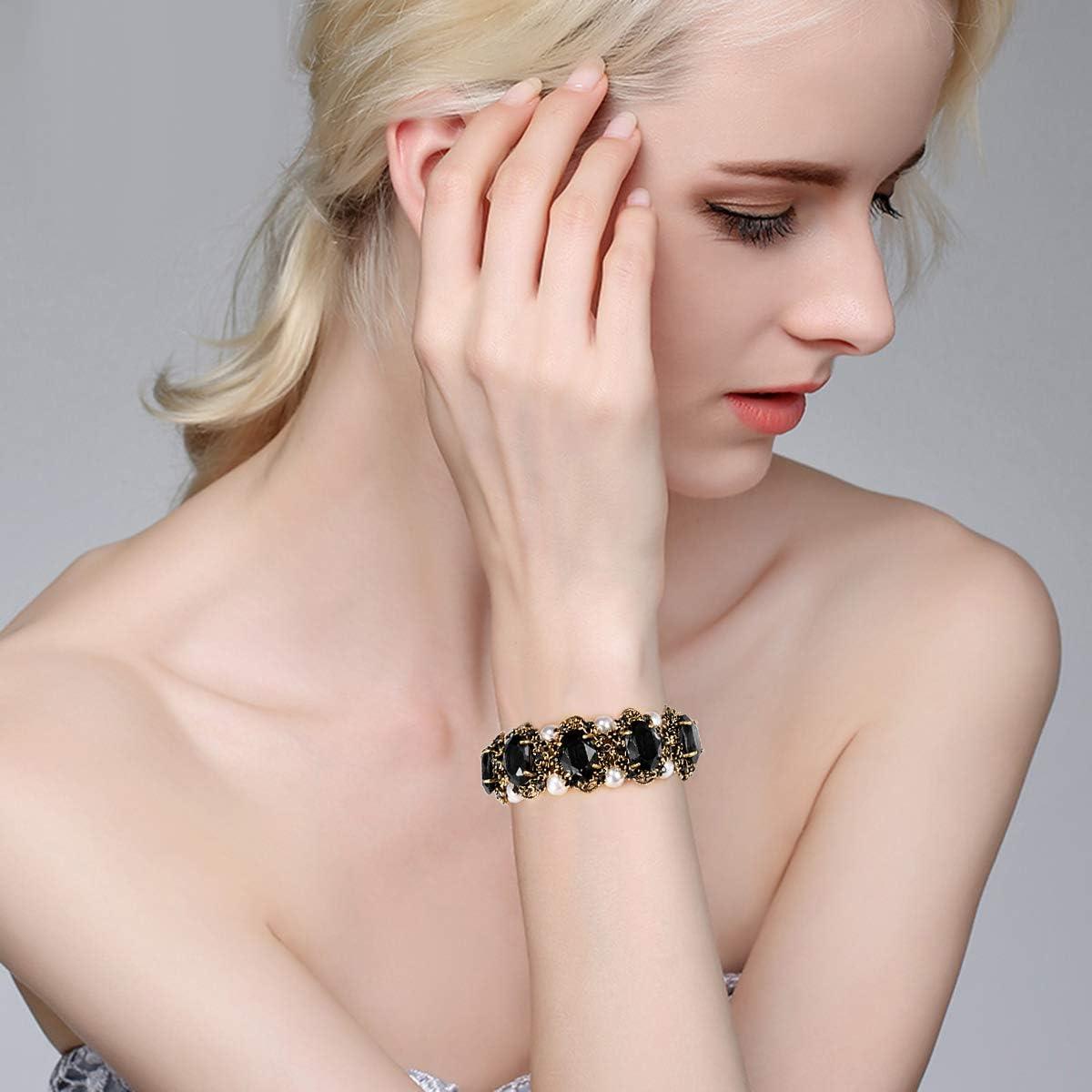 BriLove Women’s Victorian Style Crystal Simulated Pearl Multi Floral Cameo Inspired Oval Stretch Bracelet(Black Antique-Gold-Tone)
