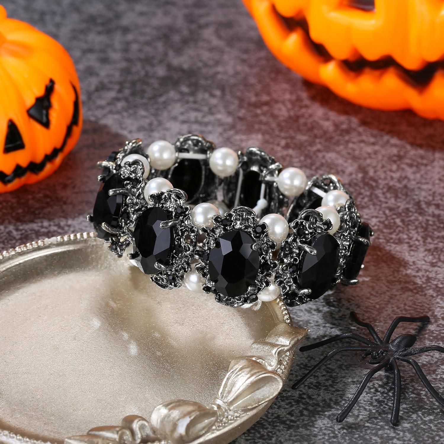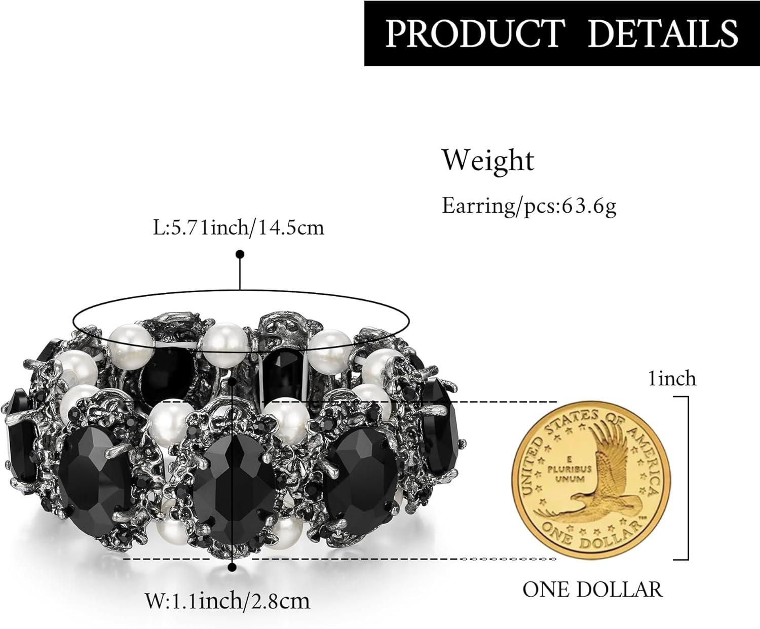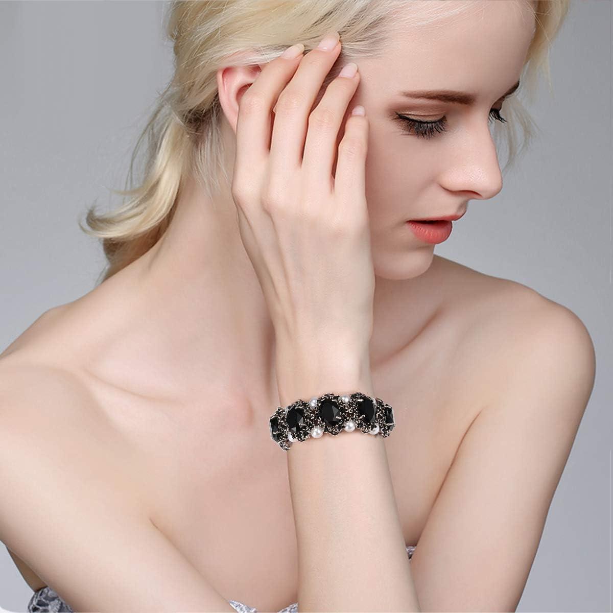 BriLove Women’s Victorian Style Crystal Simulated Pearl Multi Floral Cameo Inspired Oval Stretch Bracelet(Black Antique-Silver-Tone)